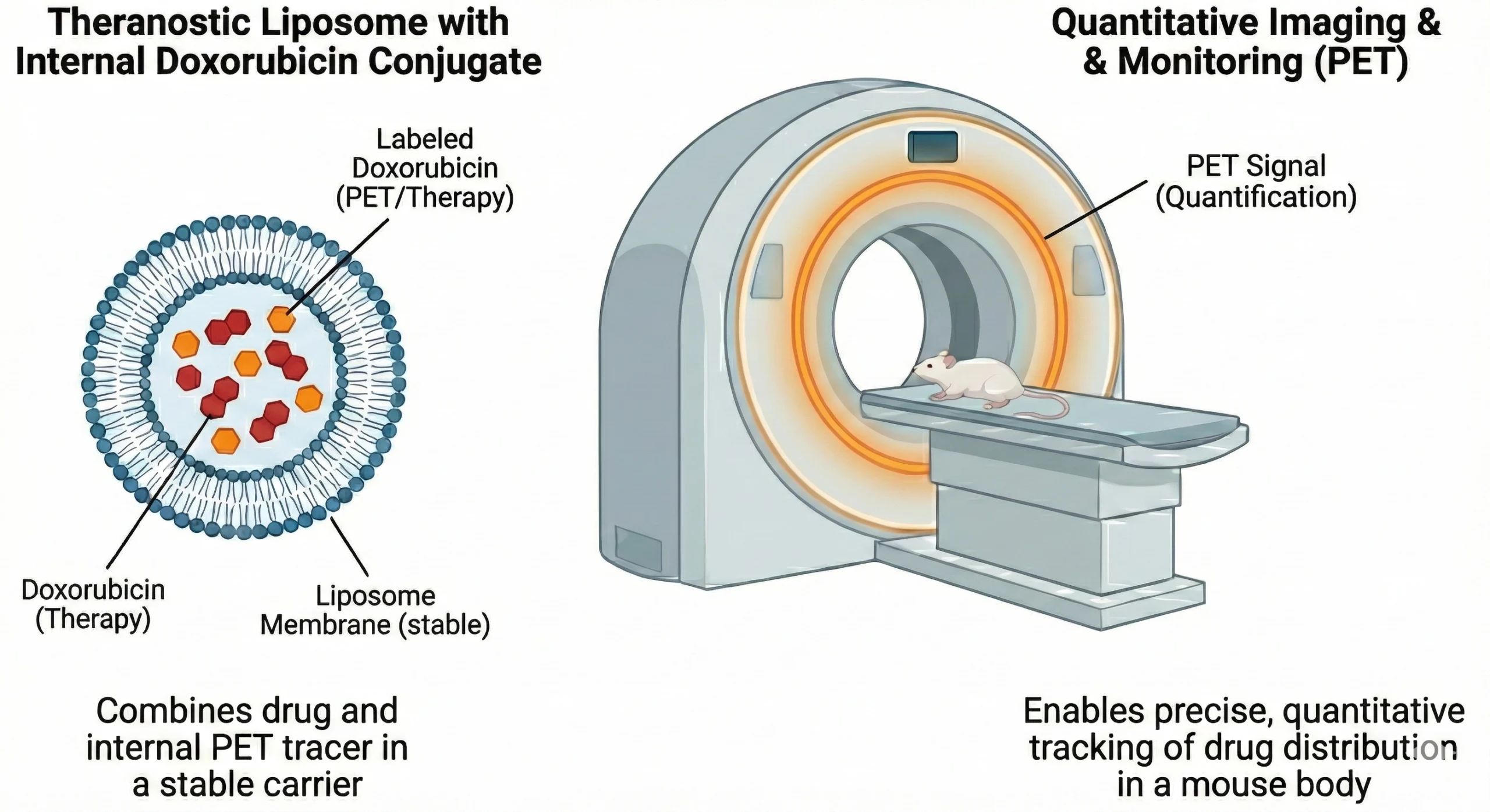 This paper reports on a radioactively labelled formulation of liposomal doxorubicin, Talidox. Using state-of-the-art PET imaging, Rafael de Rosales and his team were able, for the first time, to non-invasively track the biodistribution of Talidox in vivo over several days. The findings provide important methodological and technological insights for the further development of brain-targeted drug delivery strategies. In addition, the publication highlights the potential of radioactively labelled Talidox as a tool for modern precision and personalised medicine.